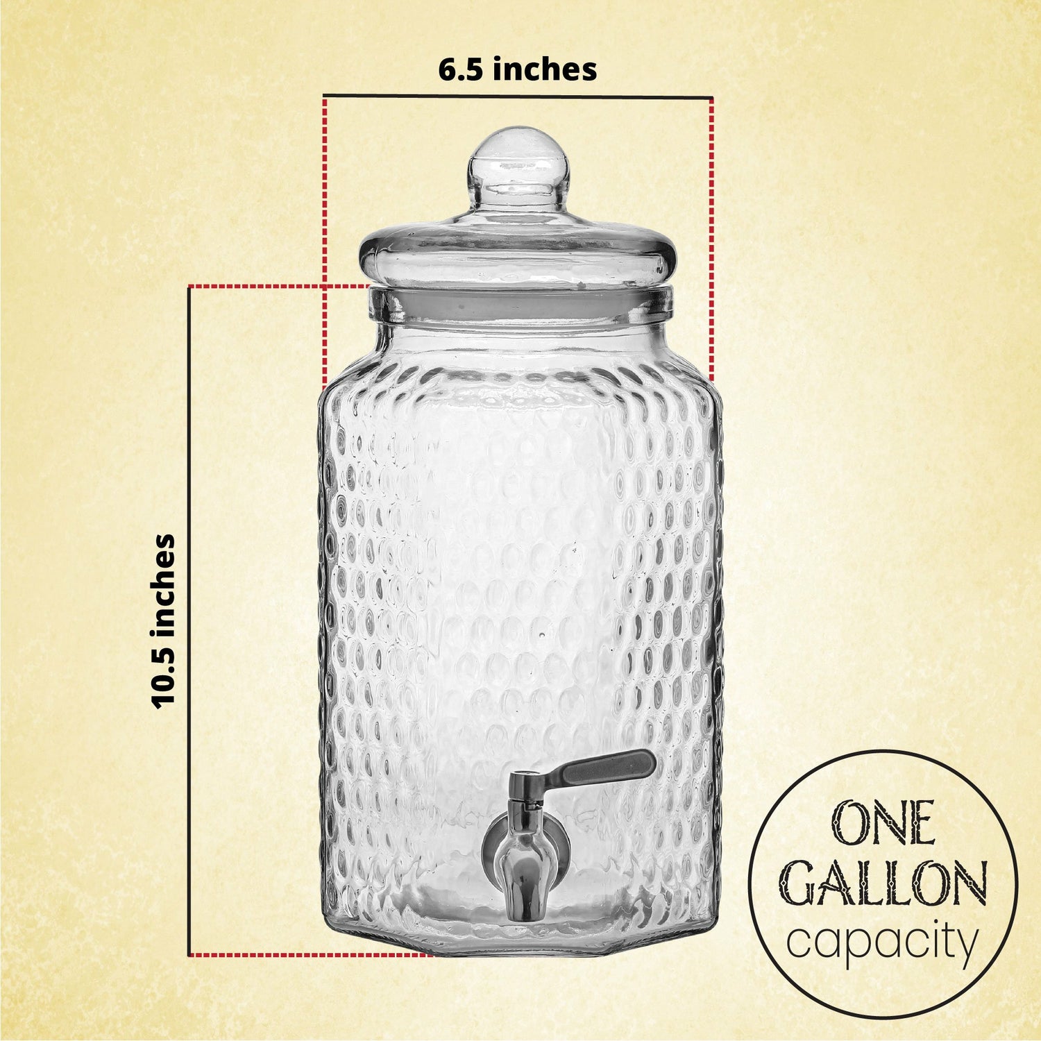 1 Gallon Glass Dispenser - Hammered Glass