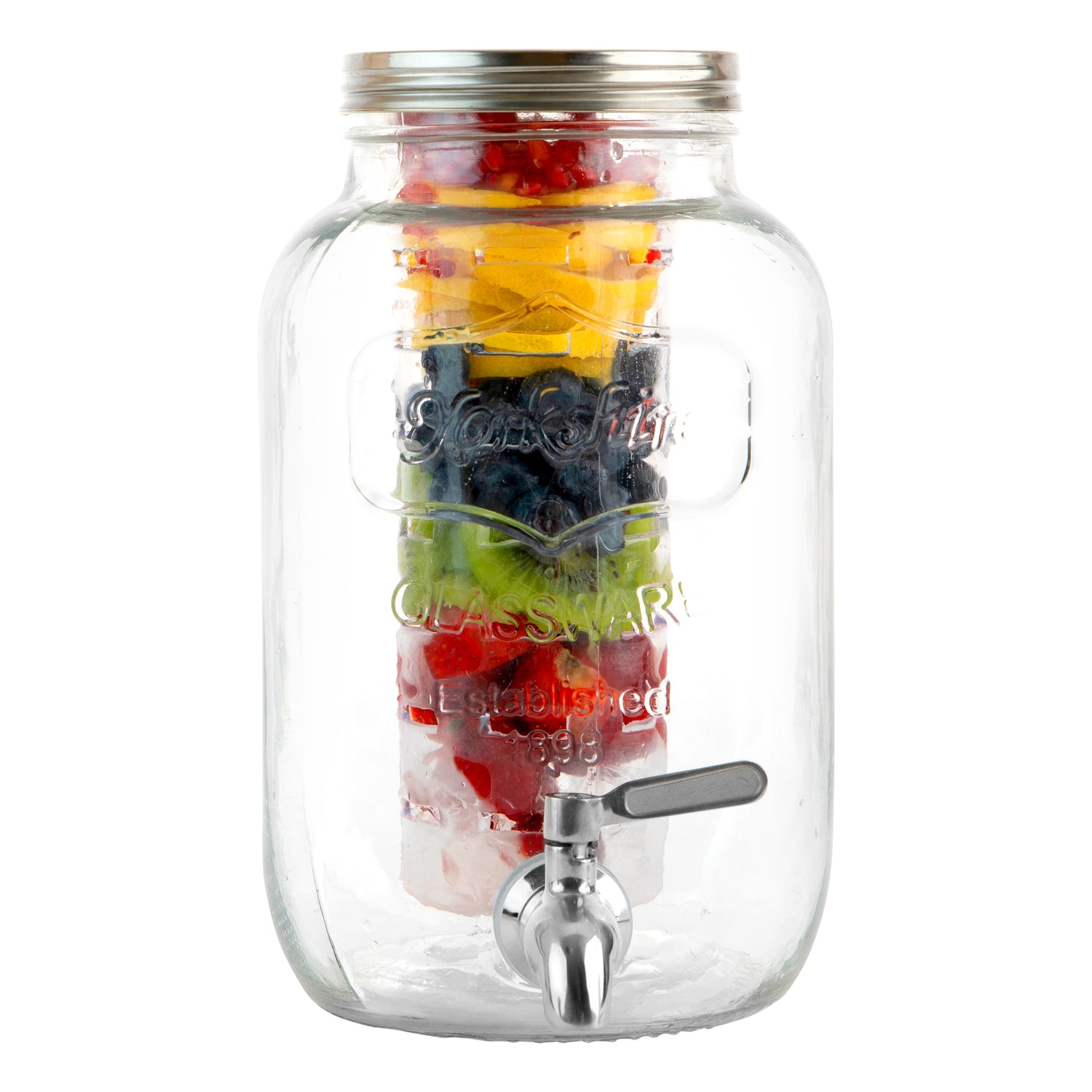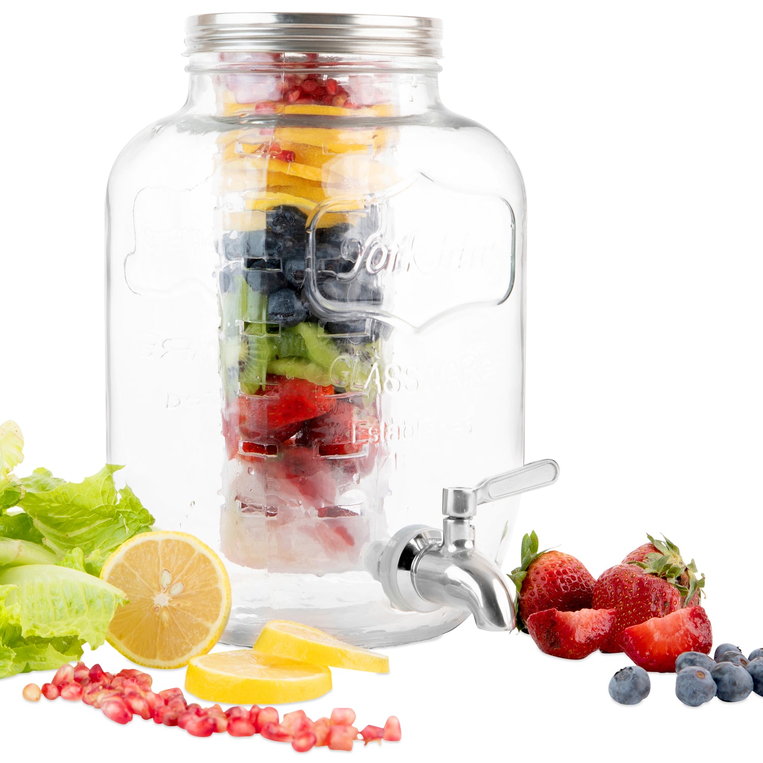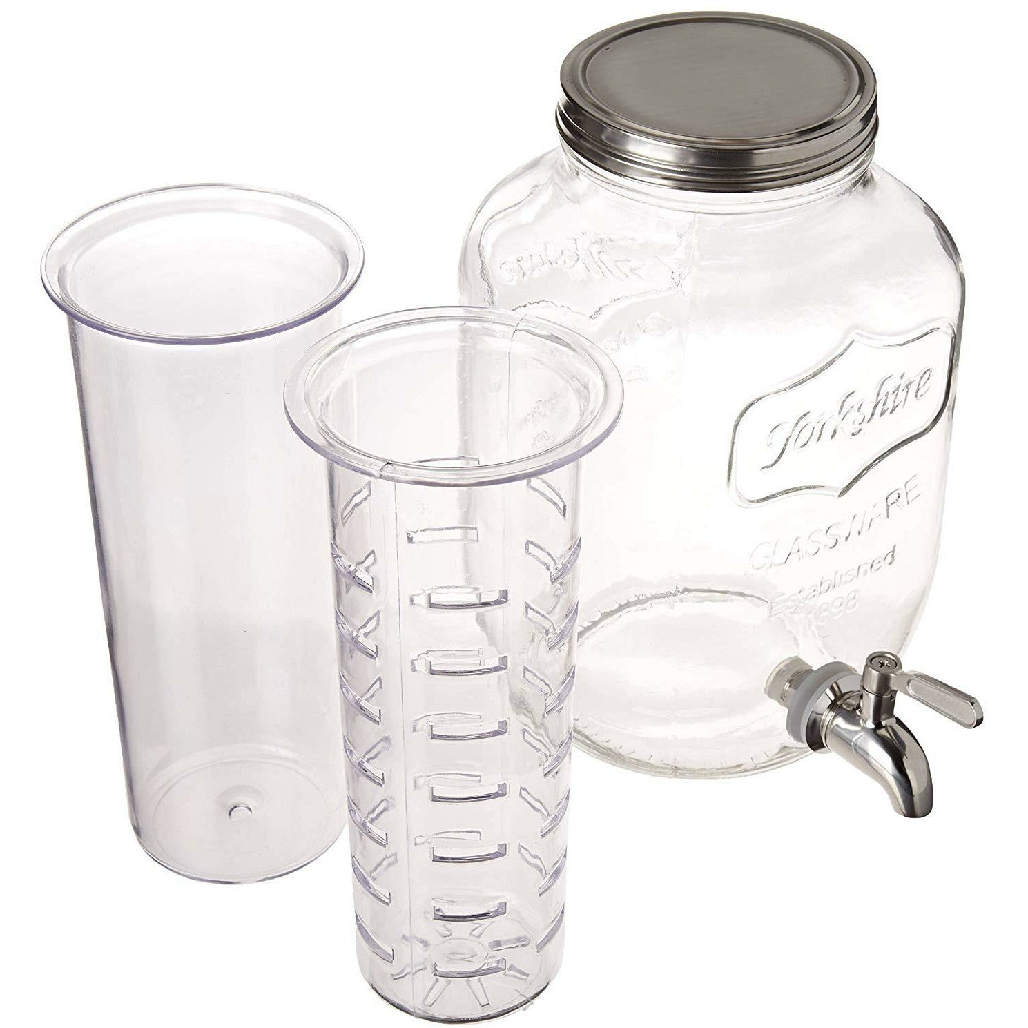 1 Gallon Glass Beverage Dispenser with Ice and Fruit Infusers and Stainless Steel Spigot