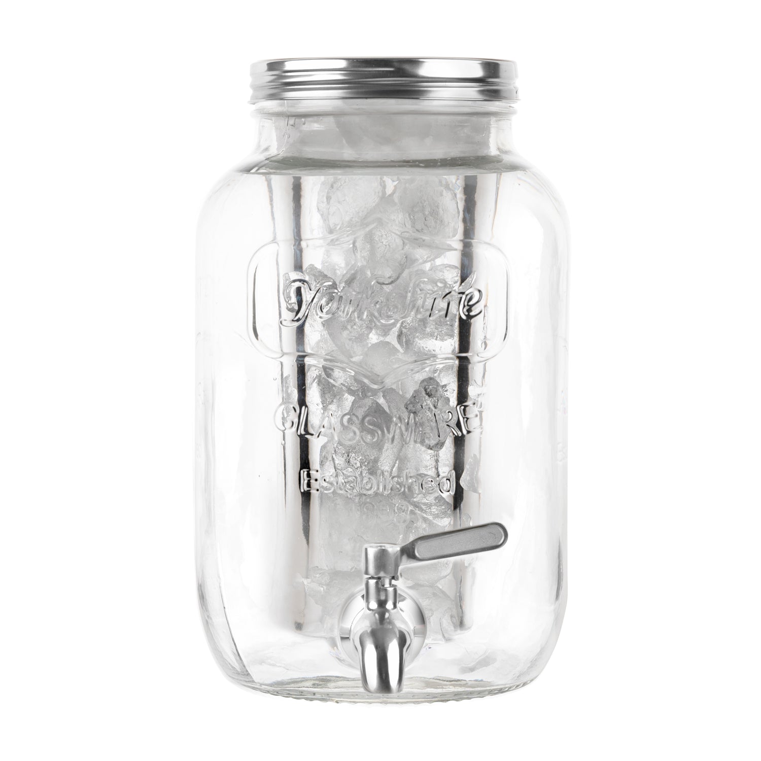 Experience the superior quality of our thick glass Yorkshire-style mason jar. Featuring a wide mouth opening, integrated fruit infuser, and ice holder, this dispenser is designed to cater to your beverage preferences while adding a touch of sophistication.