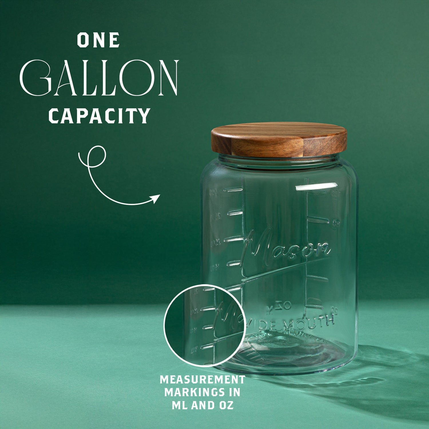 1 Gallon Mason Jar - Mason Logo - Wood Top