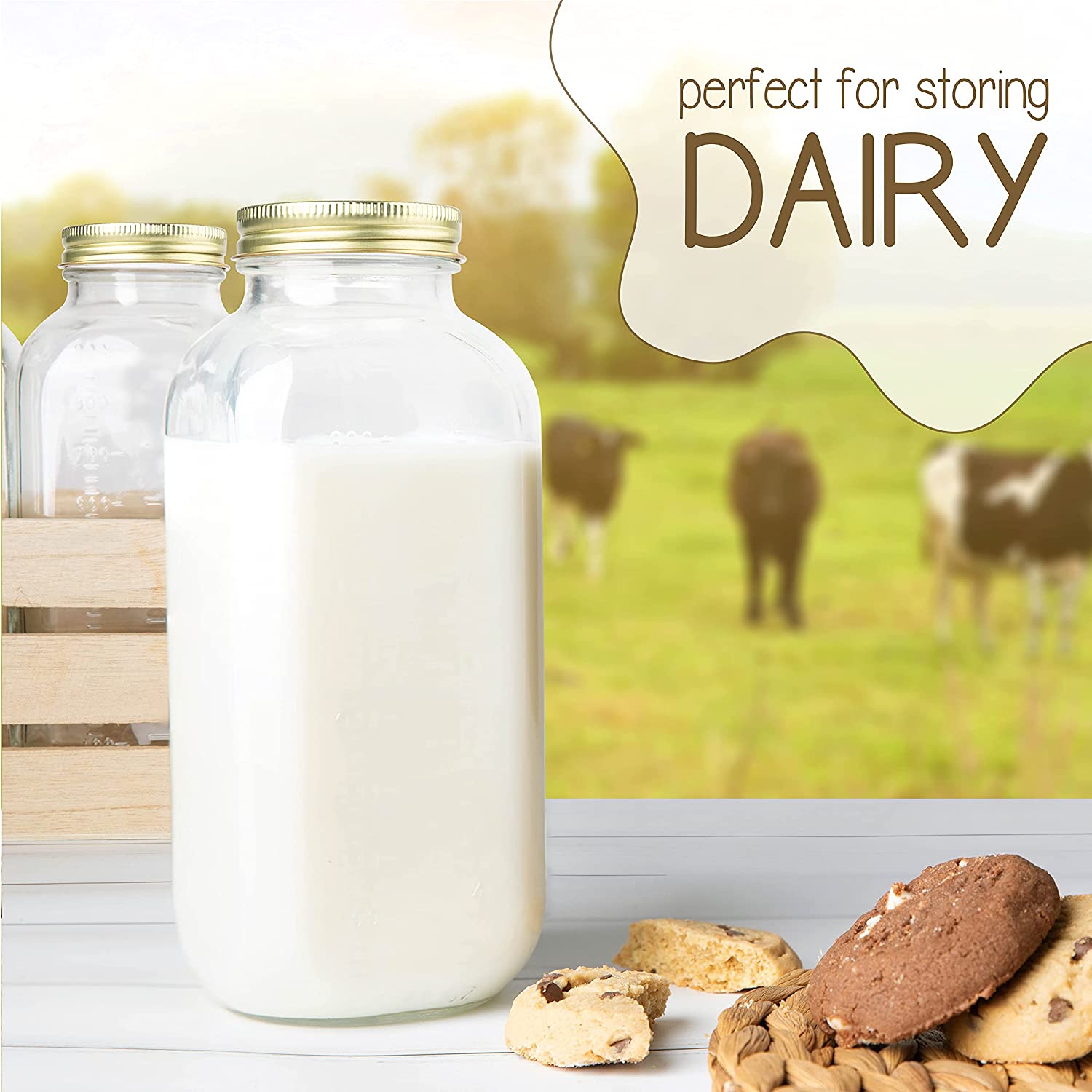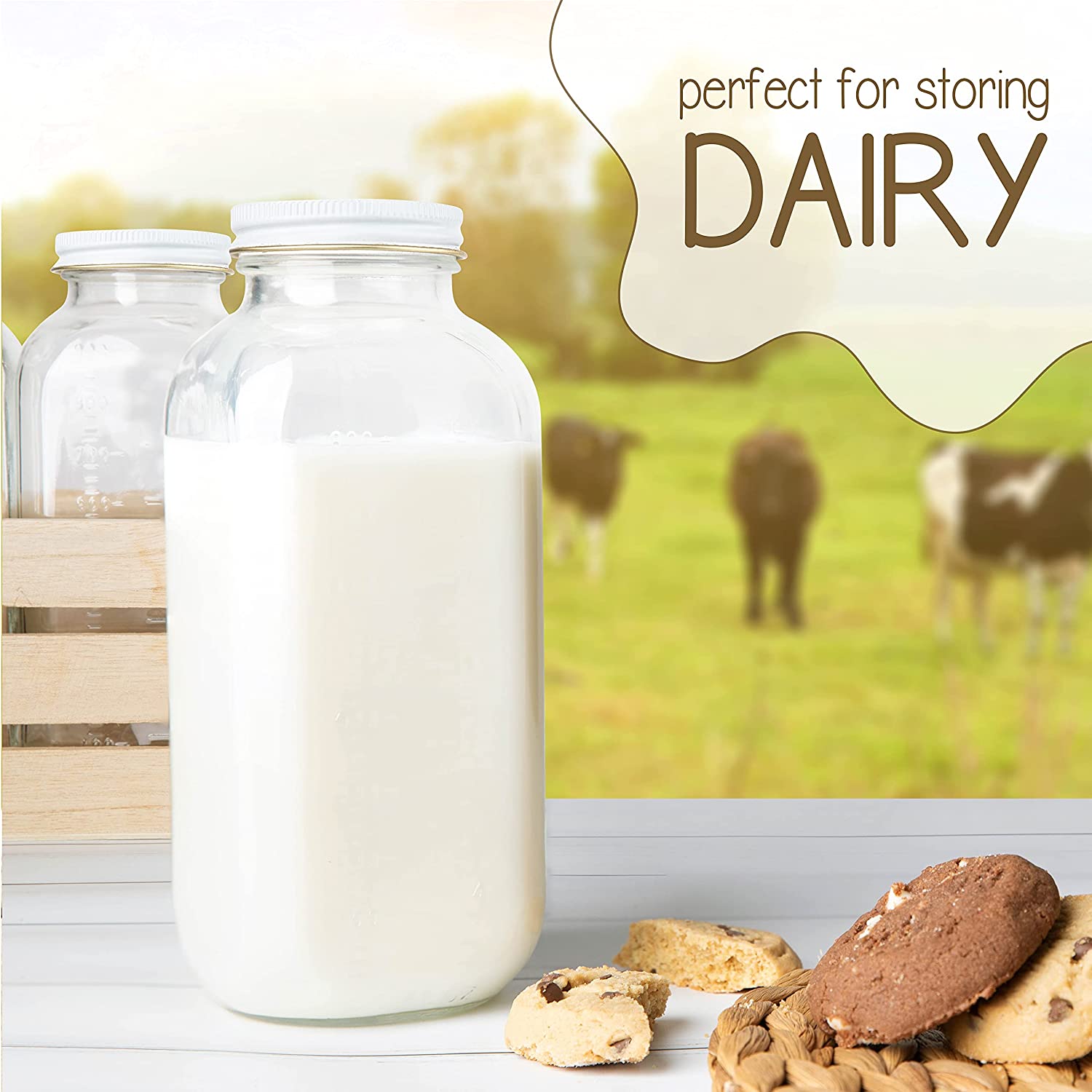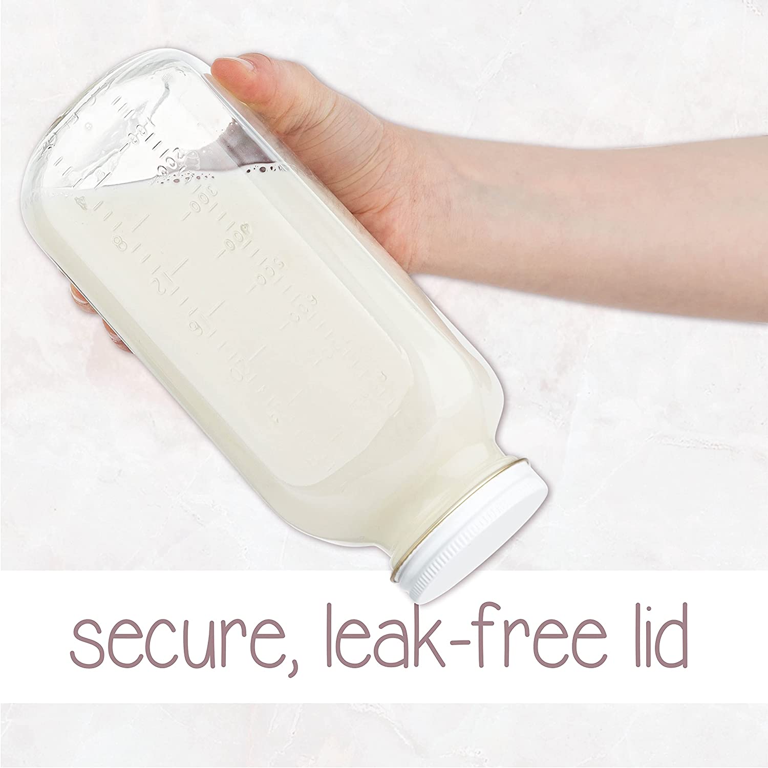 - Kitchentoolz Glass: Experience excellence with our premium 32oz glass milk bottles, complete with easy-to-twist metal airtight lids. These bottles are designed to maintain the freshness of your stored contents while providing an elegant touch to your kitchen.