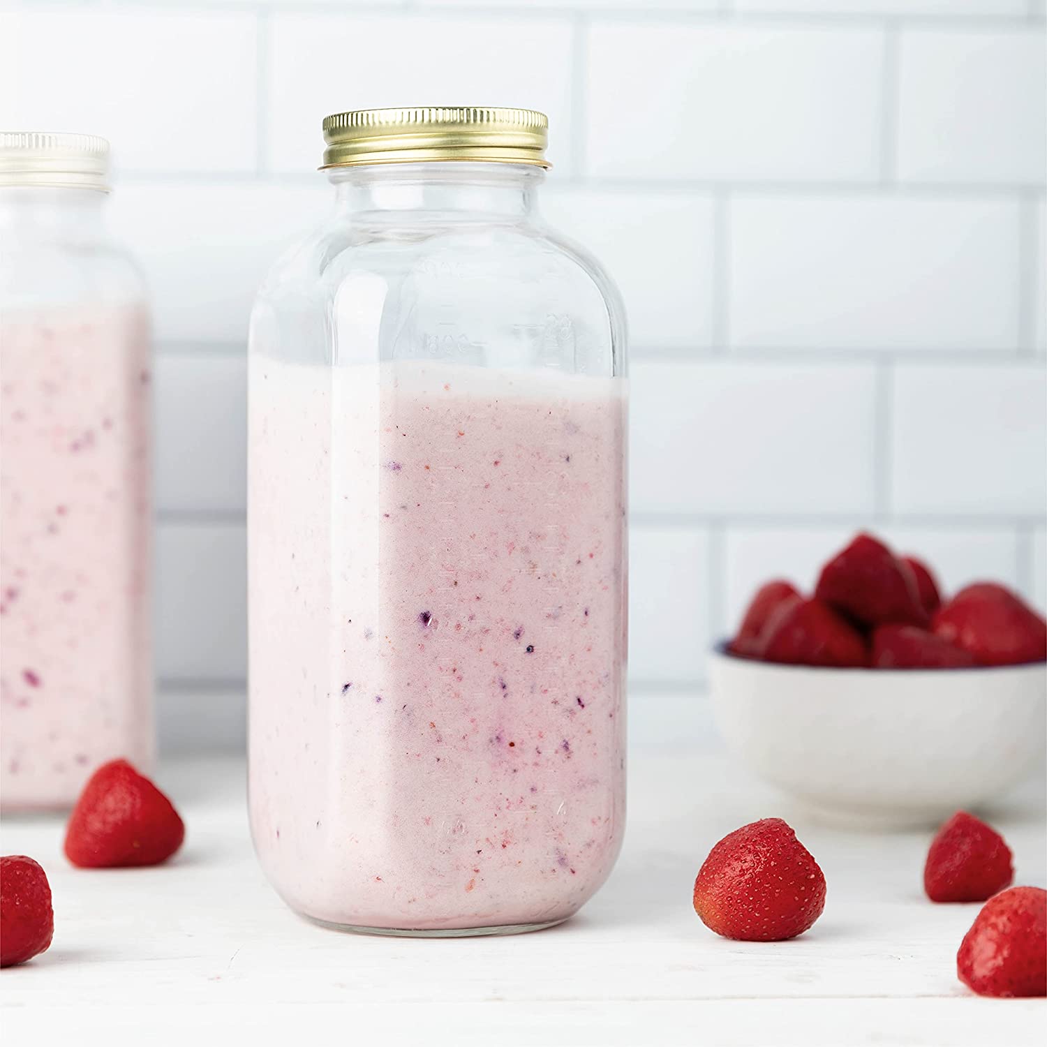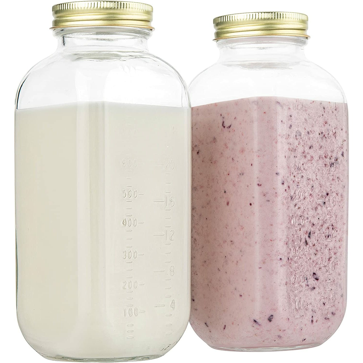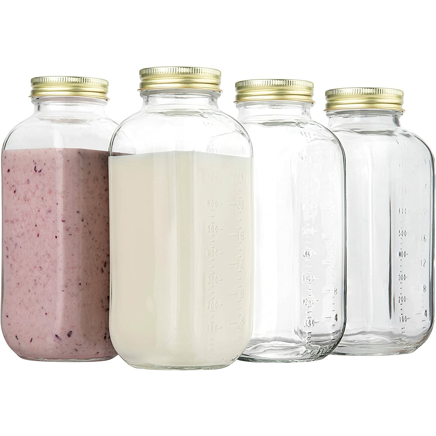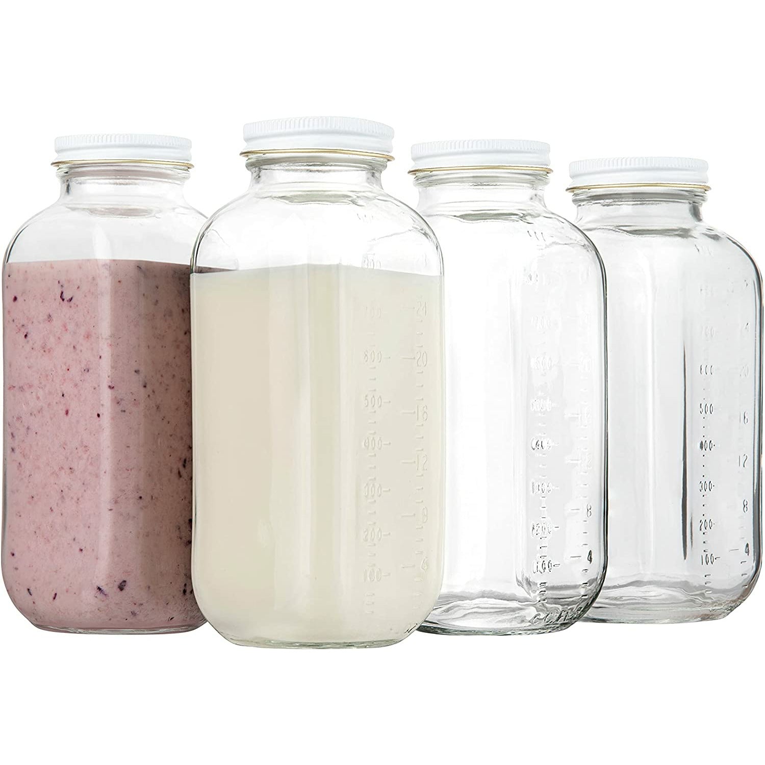 - Kitchentoolz Glass: Experience excellence with our premium 32oz glass milk bottles, complete with easy-to-twist metal airtight lids. These bottles are designed to maintain the freshness of your stored contents while providing an elegant touch to your kitchen.