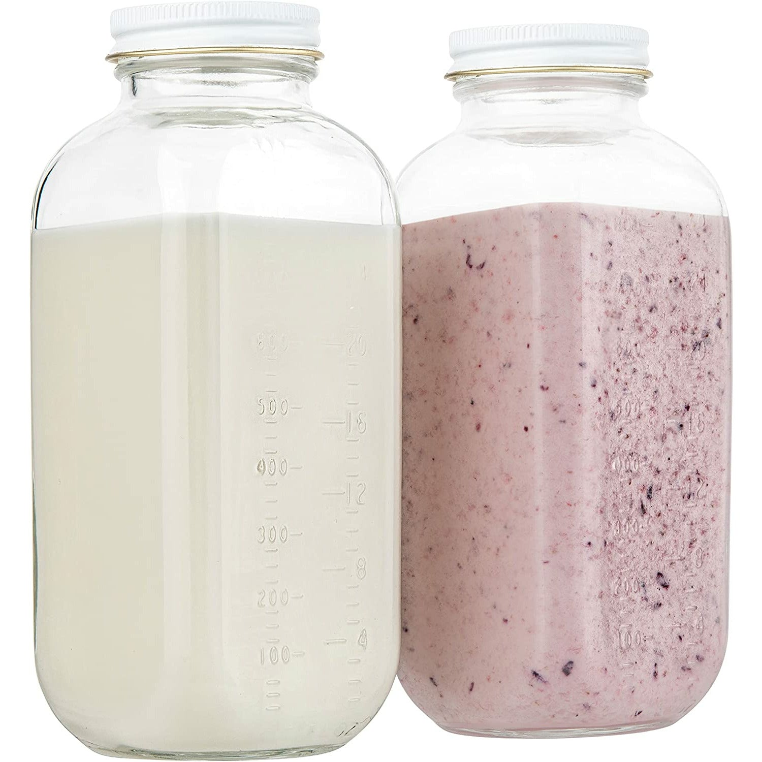 32oz Square Glass Milk Bottle with Metal Airtight Lids
