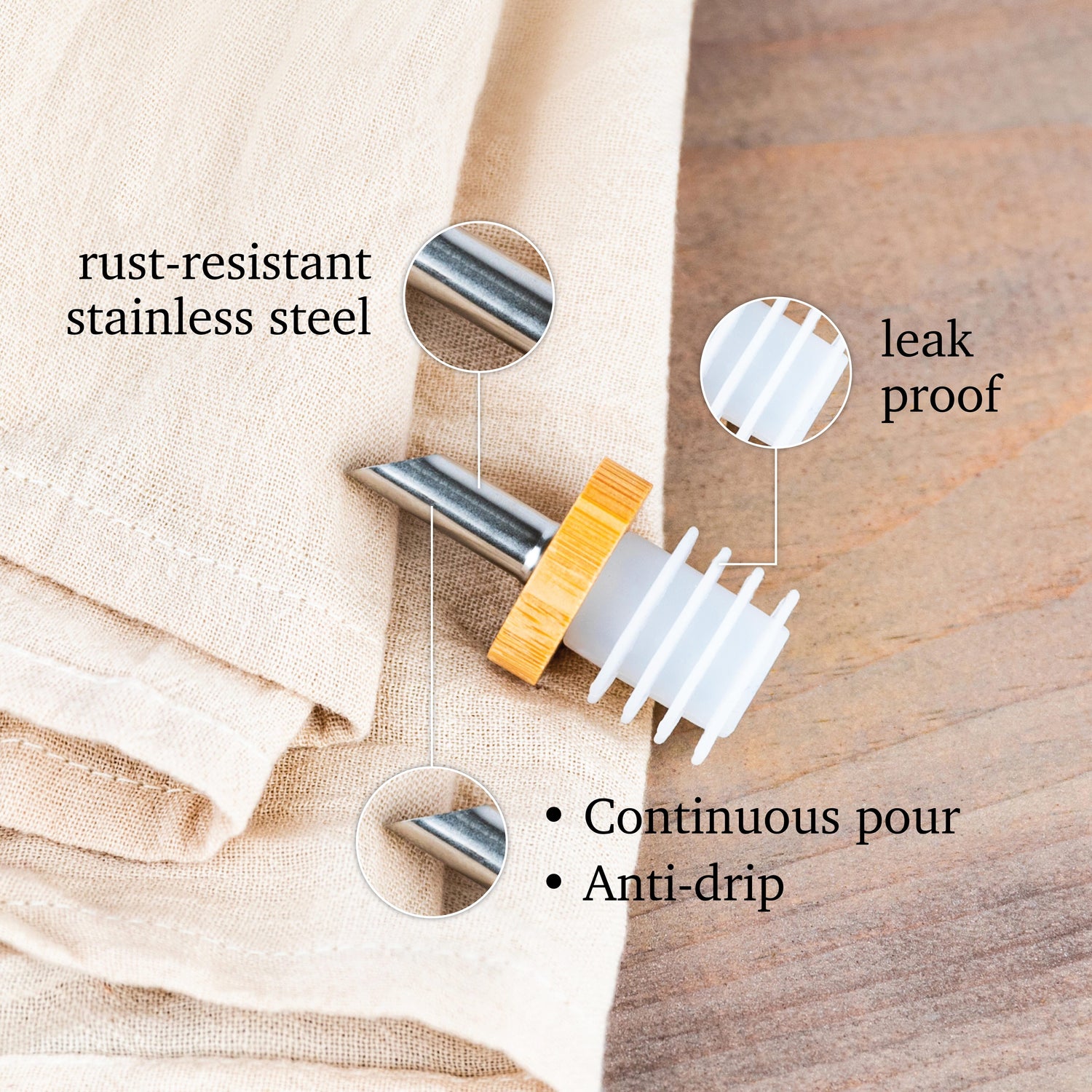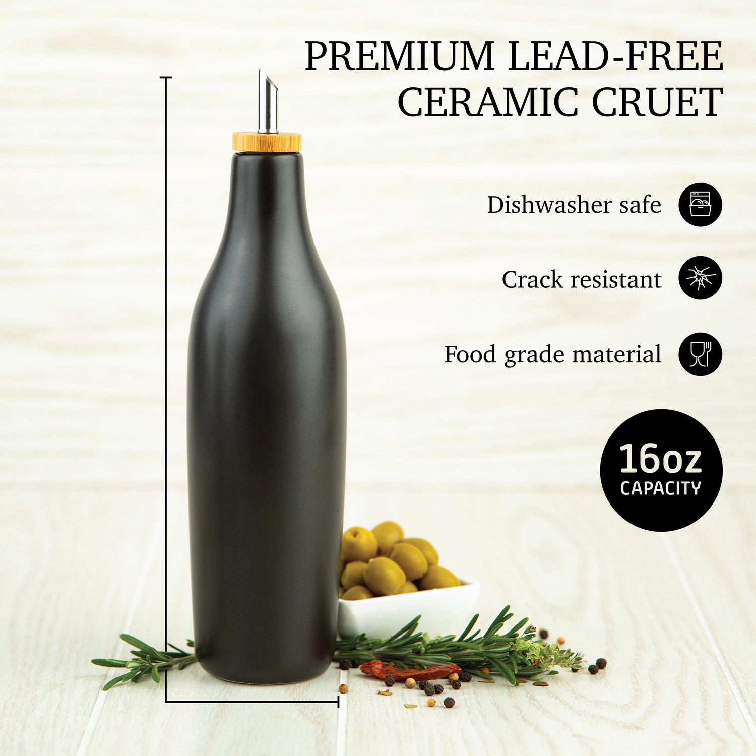 This dispenser is made from high-quality stoneware ceramic, ensuring lasting durability and a timeless aesthetic. Handcrafted and fired at elevated temperatures, the bottle's robust construction withstands the demands of daily kitchen use. Its smooth, matte glaze finish adds a touch of elegance to your countertop, while the neutral wood cap and stainless steel cruet spout complement various kitchen styles.