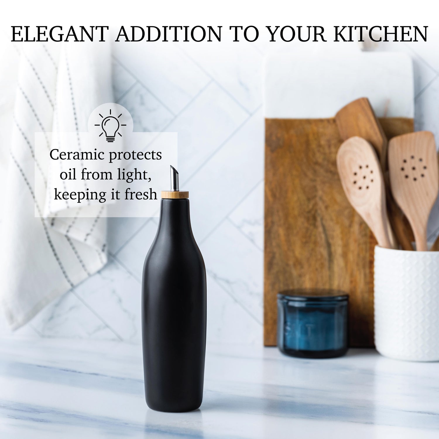 Experience the innovation that sets this dispenser apart. Designed with your ingredients' freshness in mind, the opaque and nonporous ceramic material acts as a safeguard against harmful UV rays. Unlike traditional glass bottles, this dispenser shields the contents from light-induced degradation, preserving the flavors and quality of your favorite olive oils, vinegars, or dish soaps.
