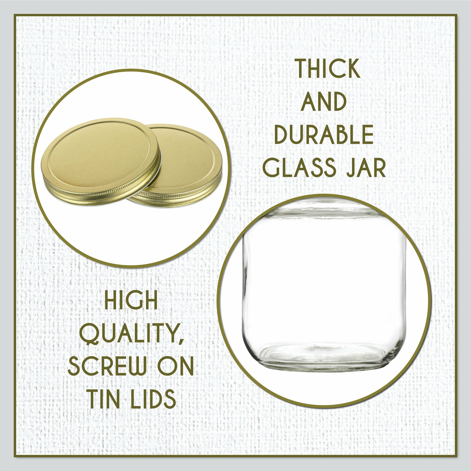 Half Gallon Glass Mason Jar Wide Mouth - Gold Metal Lids