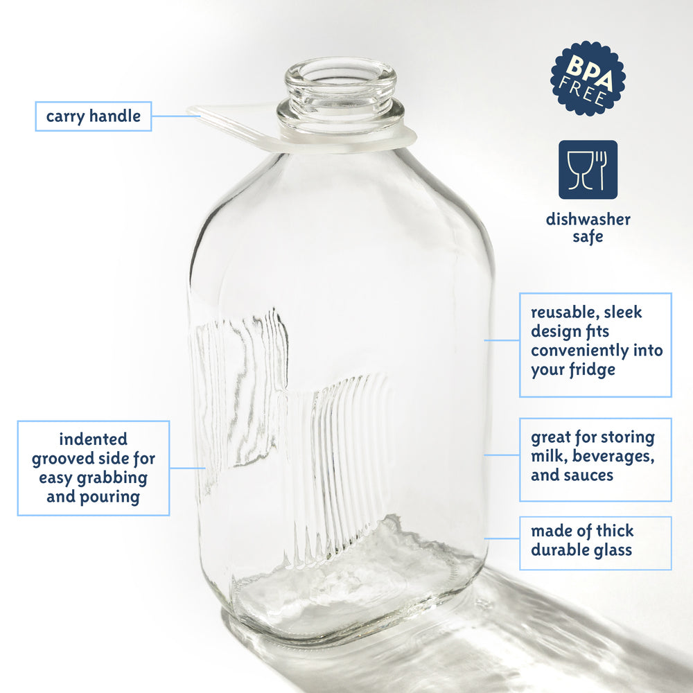 Glass Milk Jugs with Caps - Perfect Milk Container for Refrigerator - Half Gallon Glass Milk Bottle with Tamper Proof Lid and Pour Spout